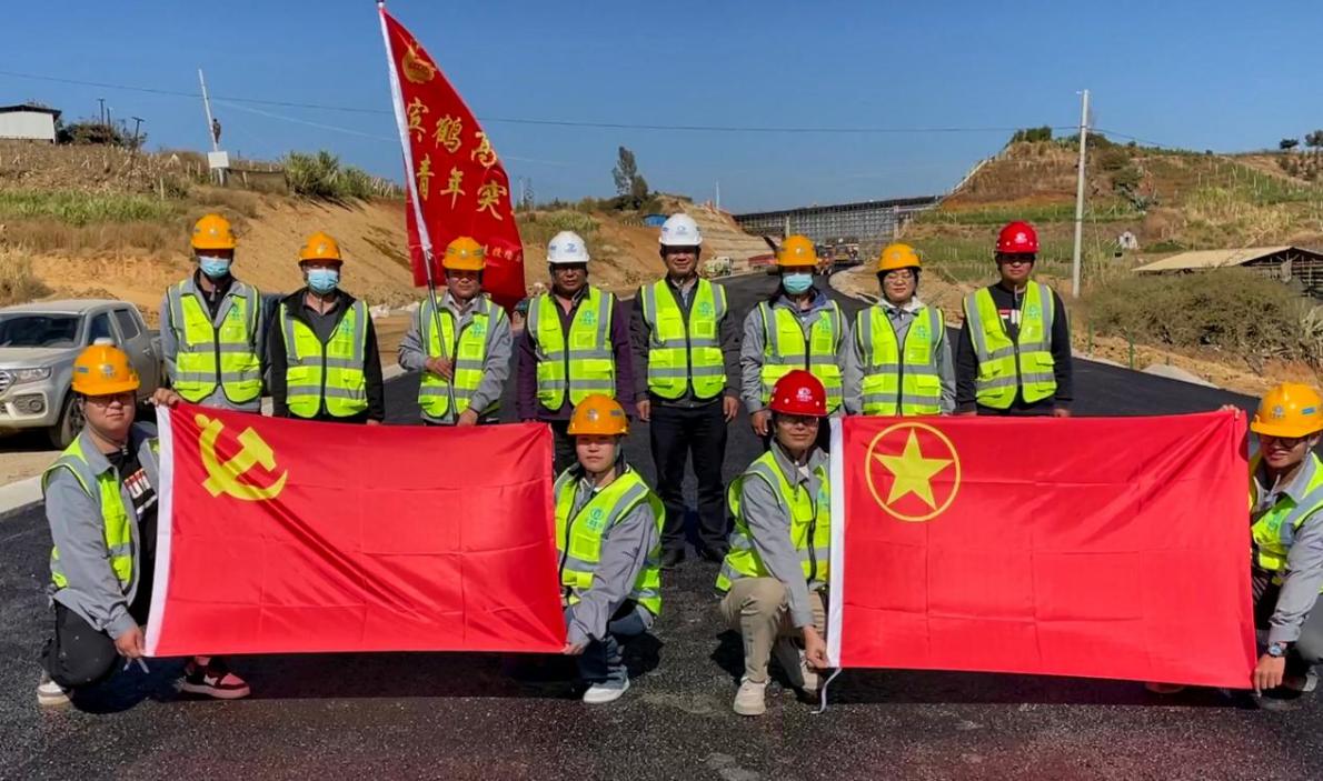 天宇系列图12月11日下午,第三直管部宾鹤项目在沥青摊铺现场举行青年突击队授旗仪式...
